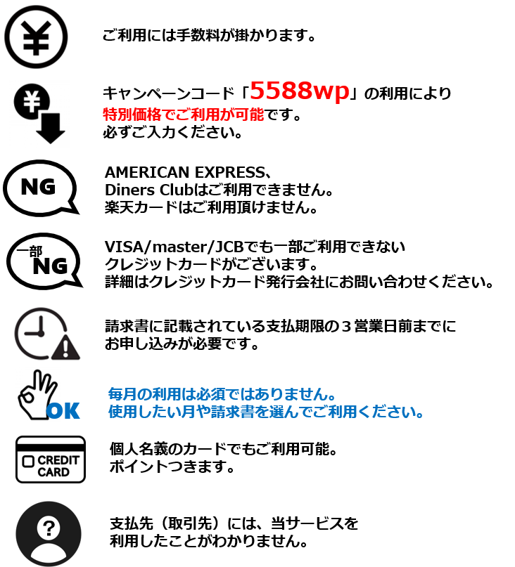 ※本サービスは、マネーフォワードケッサイ株式会社の運営する「マネーフォワード 請求書カード払い(以下:請求書カード払い)」のサービスをセディアグループお得意先様に特別価格でご案内するサイトです。