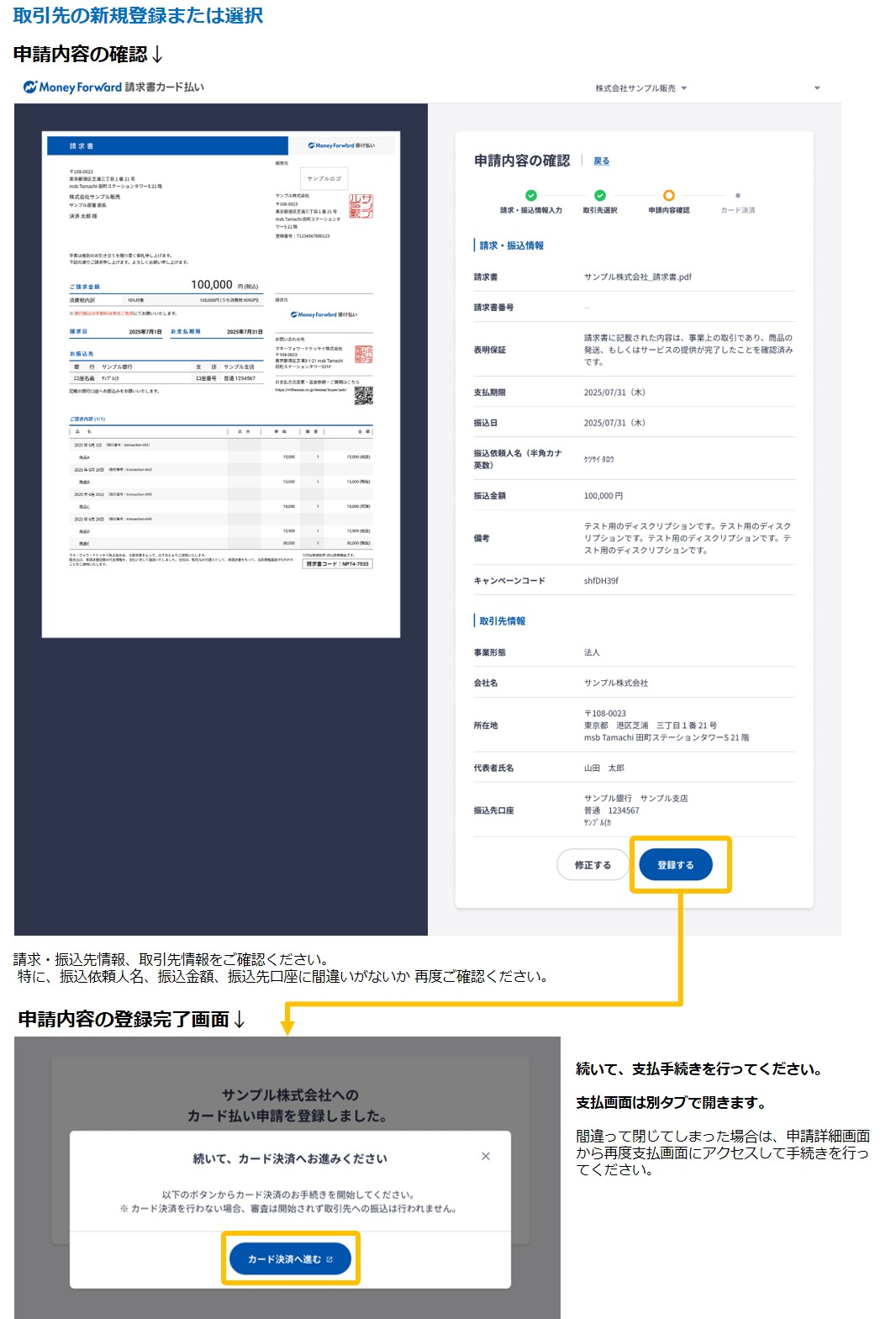 請求額の一部の金額でご利用になる場合は、必ず事前に支払先(相手方)に確認を取りご利用ください。
